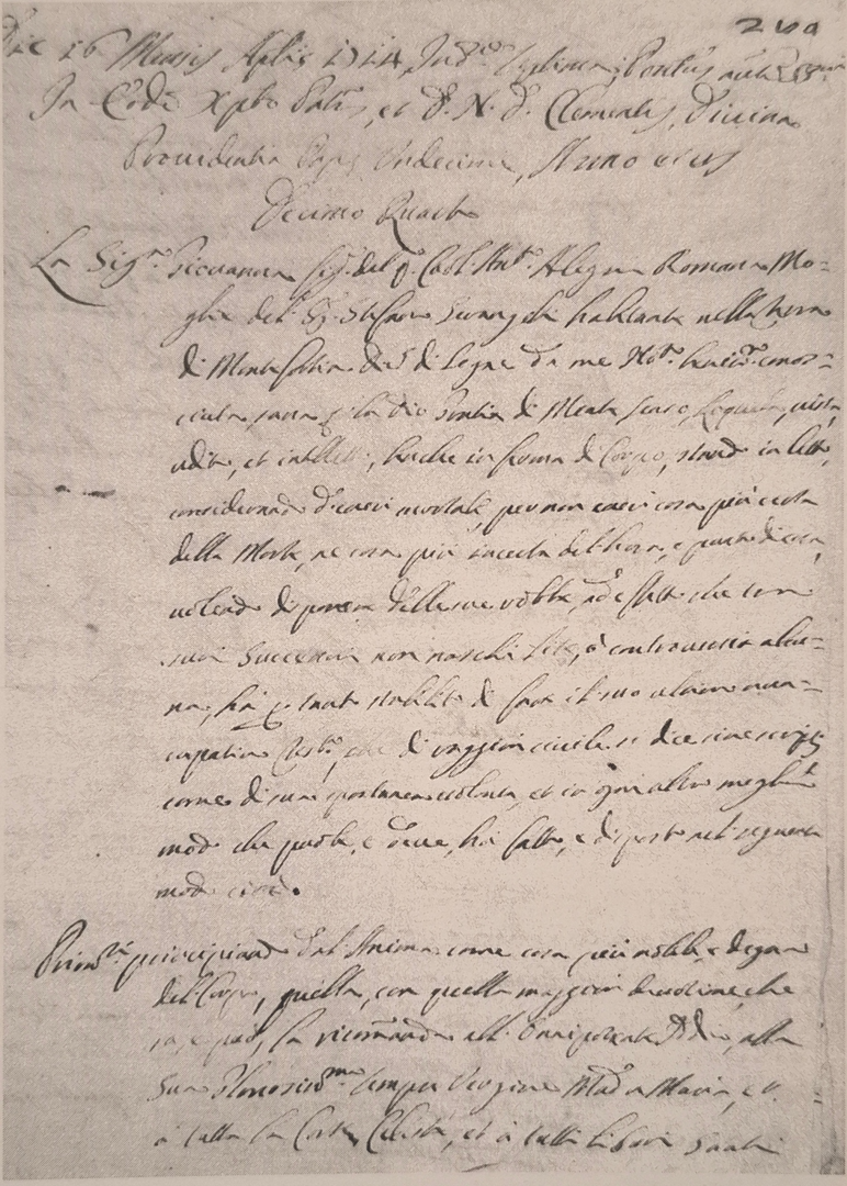 (Abbildung oben: Testament der Giovanna Allegri)